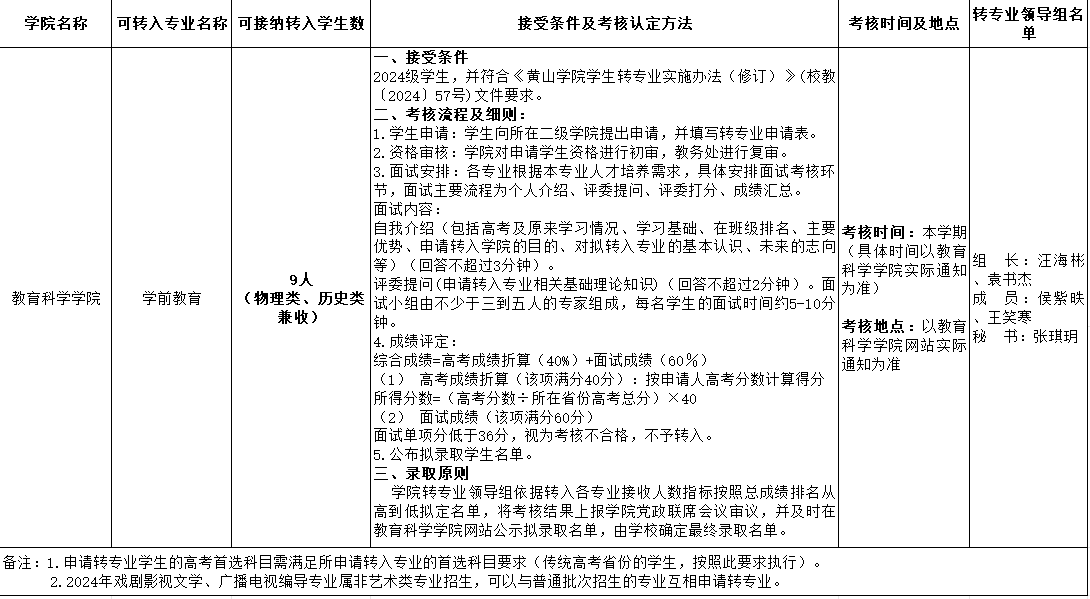 2024-2025学年学生第二次转专业教育科学开元(中国)接收指标及实施细则