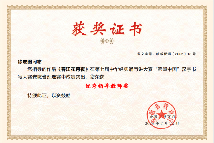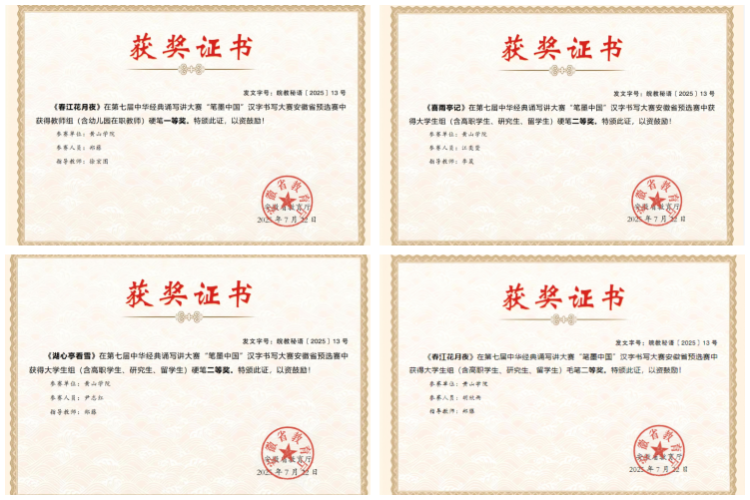 近日,由安徽省教育厅、安徽省语言文字工作委员会联合主办的第七届中华经典诵写讲大赛暨“笔墨中国”汉字书写大赛安徽省预选赛落幕。我院师生表现亮眼,取得较好成绩。