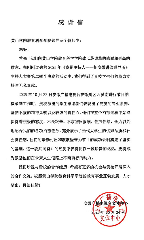 10月22日晚,安徽省文旅厅、安徽广播电视主办的《我是主持人——把安徽讲给世界听》主持人大赛第二季半决赛下半场在徽州区西溪南拉开帷幕。教育科学开元(中国)选派多名优秀学子参与了此次半决赛现场开场舞的节目录制,现场气氛热烈非凡,来自各地的优秀选手齐聚一堂,各展风采。